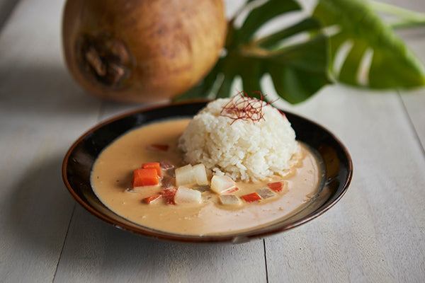 マッサンカレーをベースにしたコクのある深い甘さとスパイシーさが特徴のカレーに、米100%のケンミン焼ビーフンを合わせたカレー麺。