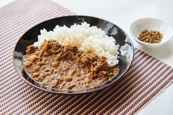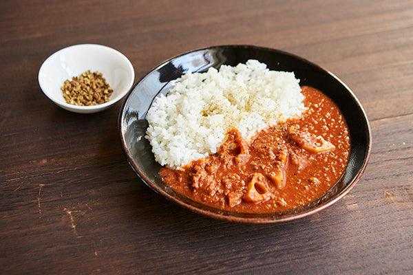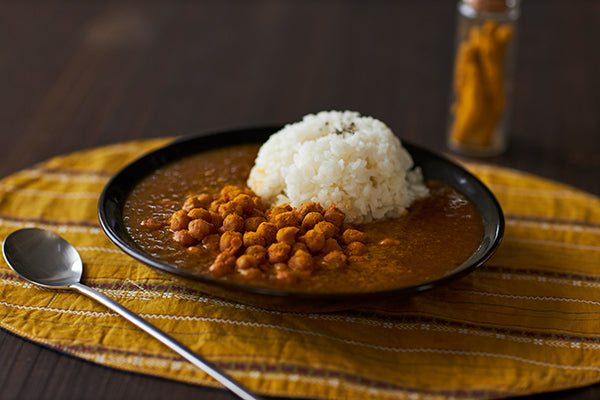 ④ Serve rice and curry on a plate and top with chickpeas from ③ on the roux.る。