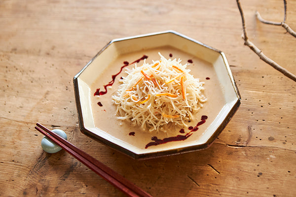 Boil your favorite root vegetables such as carrot radish lotus root and top with white mandrill curryピング。